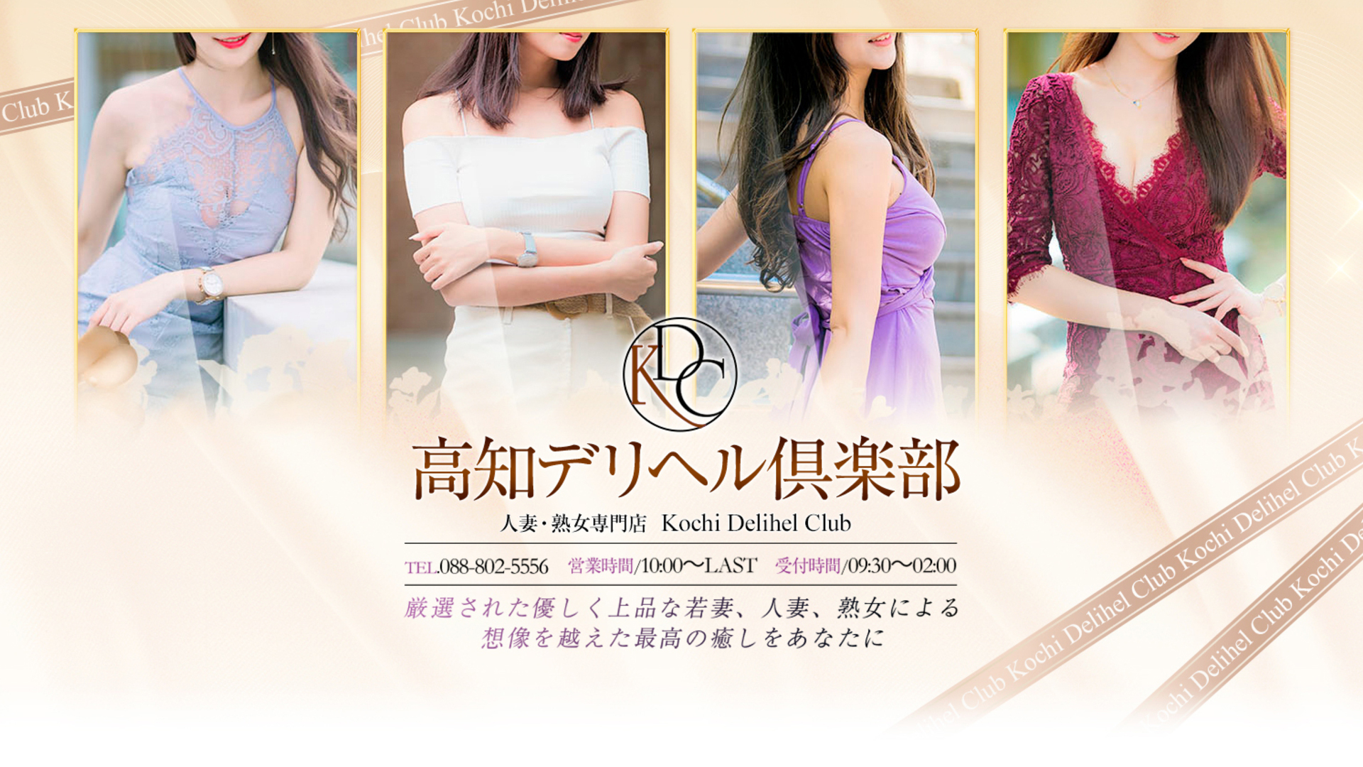 高知県(高知市)を出張エリアとした優しく上品な人妻・熟女専門のデリバリーヘルス「高知デリヘル倶楽部」の公式サイトです。当店では、単に風俗としてのデリバリーヘルスという枠を超えて人妻・熟女ならではの最高の癒し・本当のくつろぎ・優雅な時間をお客様に提供することを目指しております。